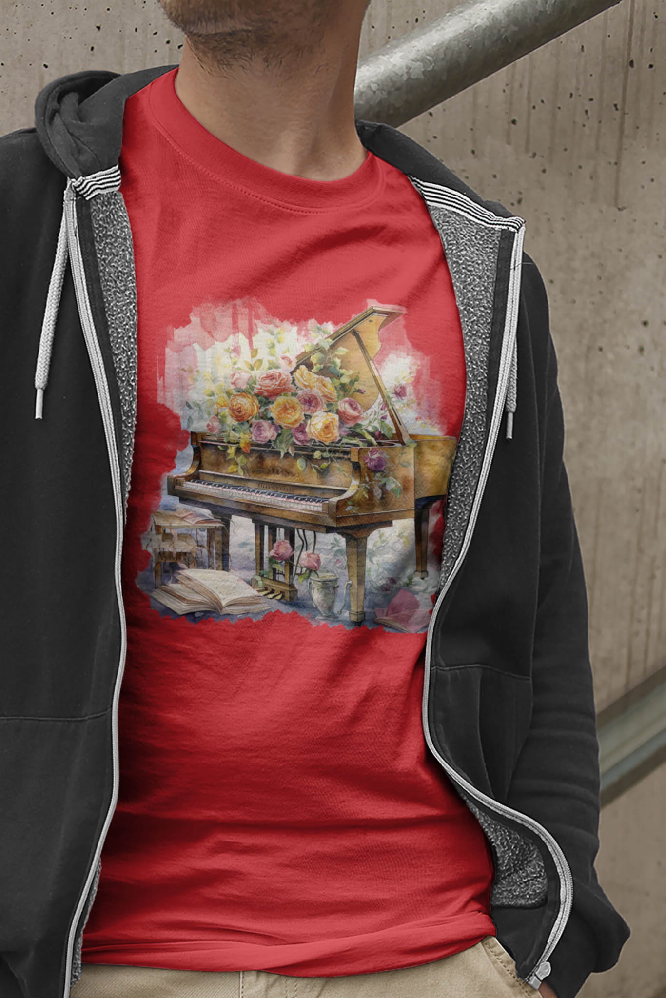 Nie zwlekaj, zamów koszulkę „Fortepian róże” już teraz! Podkreśl swoją miłość do muzyki lub spraw niepowtarzalny prezent dla bliskiej osoby. Zobacz też inne muzyczne ubrania, by odkryć jeszcze więcej inspiracji i wyrazić swoje muzyczne pasje na co dzień.