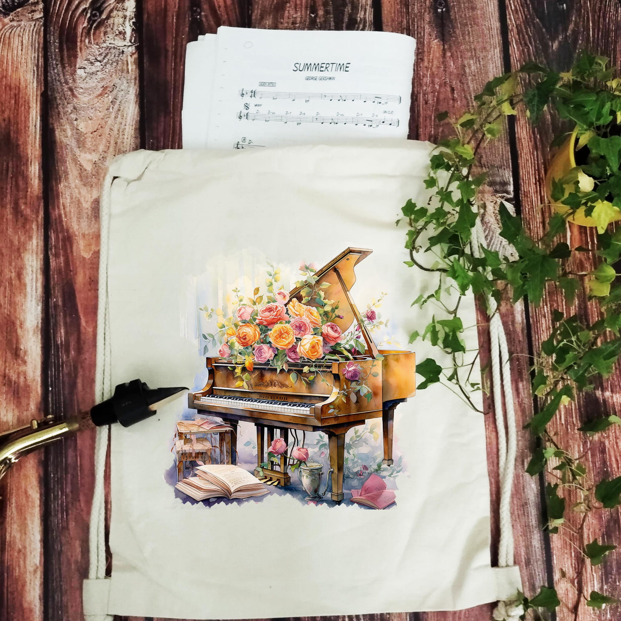 Worek-Plecak „Fortepian – Róże” – idealny prezent dla pianistki!