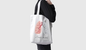Torba na nuty inne muzyczne szpargały. Może się przydać również na zakupy czy też ciężką teczkę z racji na mocny materiał (to znacznie mocniejsza torba, niż zwykle są sprzedawane). Płuca - Music inside - Torba z 2 uchami