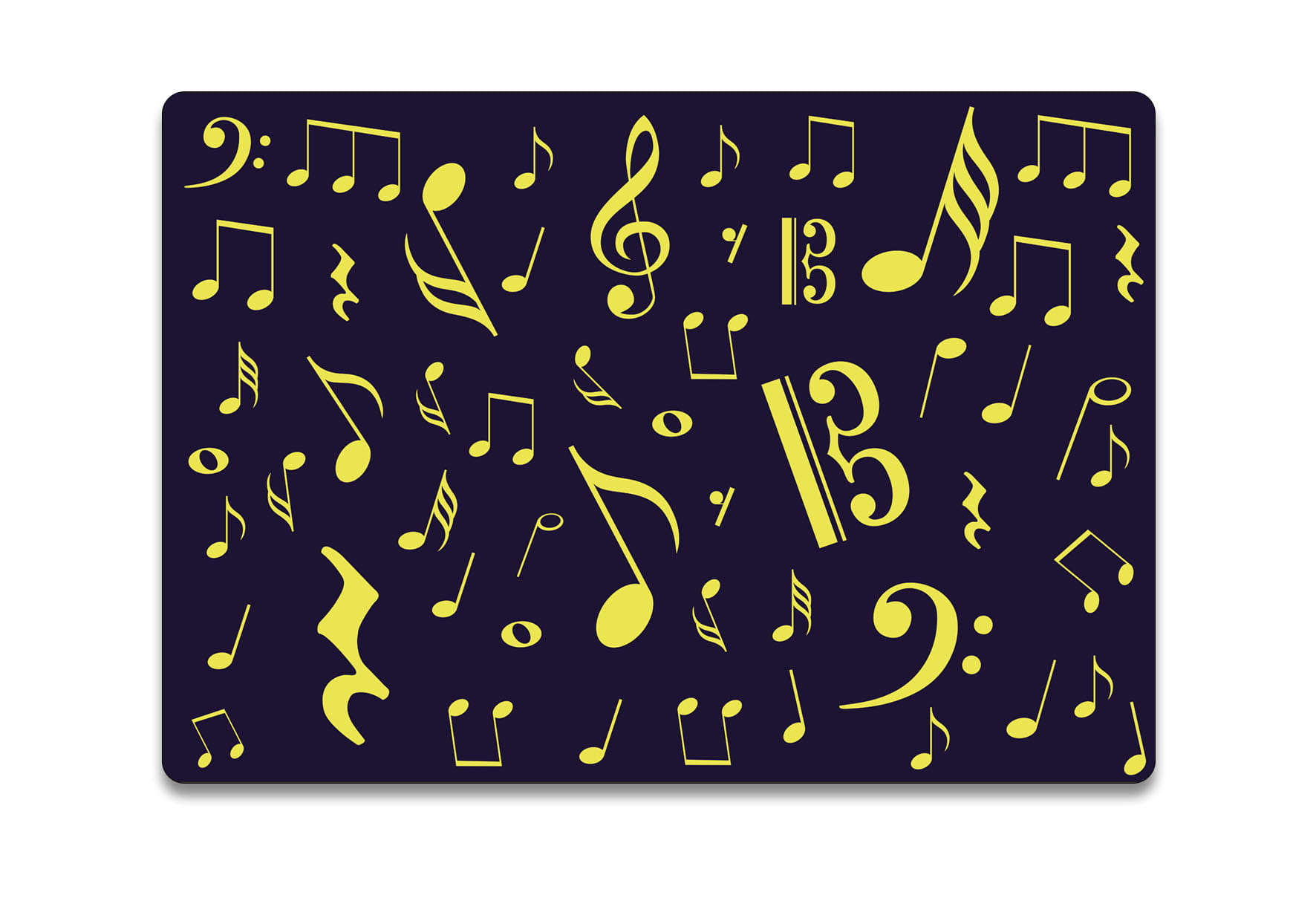 Praktyczna podkładka pod myszkę z żółtymi nutkami na granatowym tle.