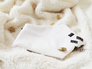 Posztka bawełniana, ok. 30 x 30 cm, na lewej stronie znajduje się zabezpieczenie haftu