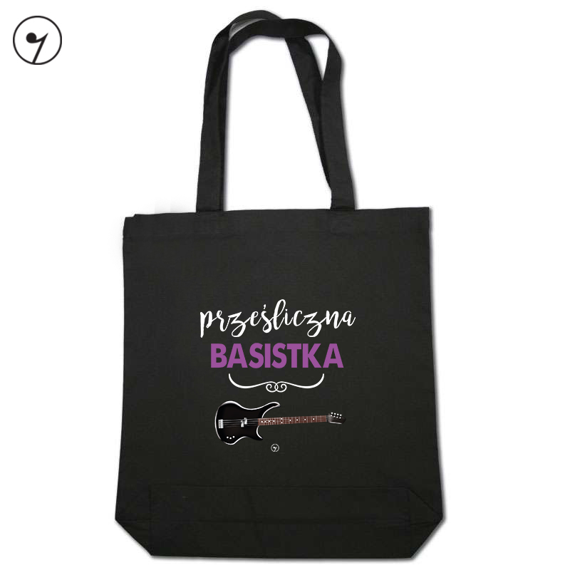 Torba na nuty i inne muzyczne szpargały. Może się przydać również na zakupy czy też ciężką teczkę z racji na mocny materiał (to znacznie mocniejsza torba, niż zwykle są sprzedawane). Prześliczna basistka.