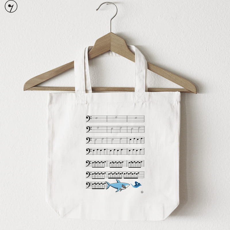 Torba na nuty i inne muzyczne szpargały. Może się przydać również na zakupy czy też ciężką teczkę z racji na mocny materiał (to znacznie mocniejsza torba, niż zwykle są sprzedawane). Rekin.