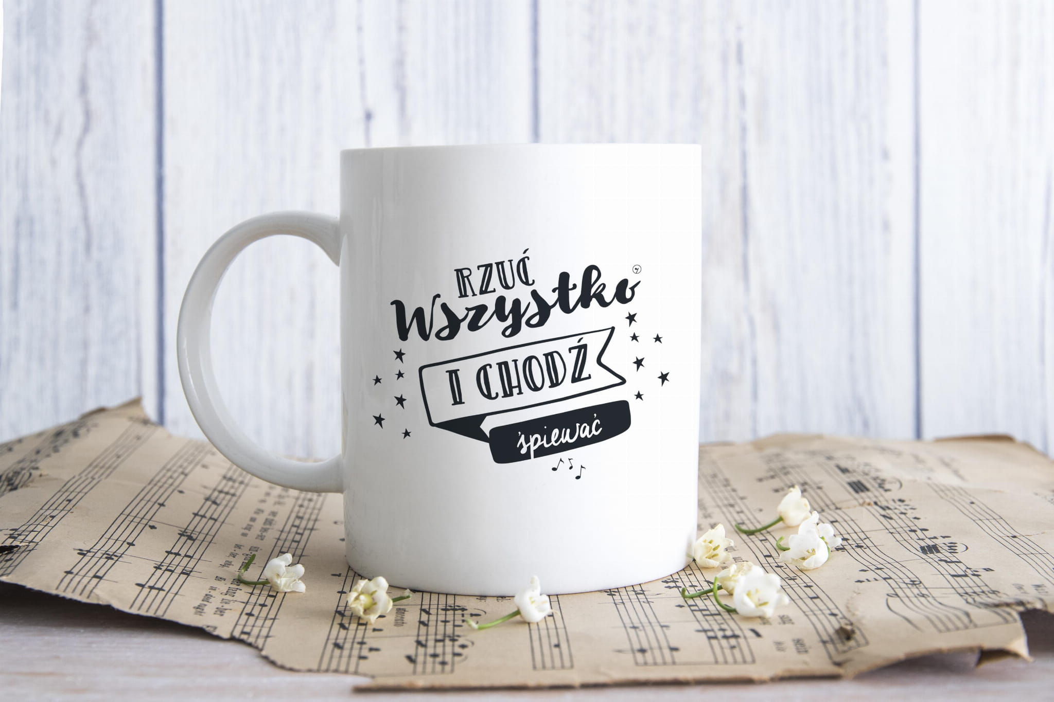Kubek ceramiczny biały o pojemności 330 ml ze wzorem - "Rzuć wszystko i chodź grać?".