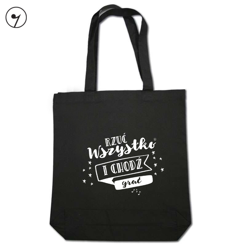 Torba na nuty i inne muzyczne szpargały. Może się przydać również na zakupy czy też ciężką teczkę z racji na mocny materiał (to znacznie mocniejsza torba, niż zwykle są sprzedawane). Rzuć wszystko i chodź grać - Torba z 2 uchami