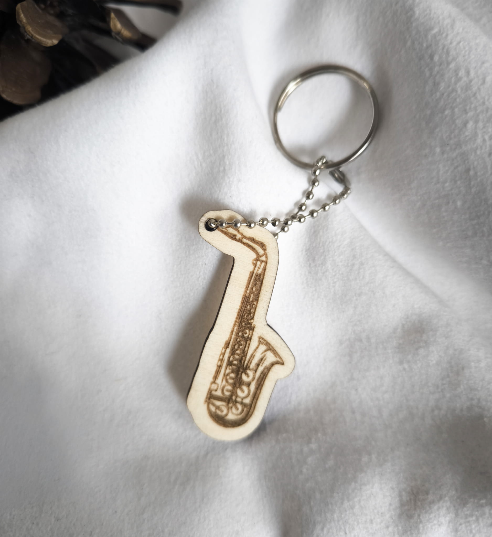 Saksofon - Brelok z drewna - Brelok ze sklejki - Prezent dla muzyka
