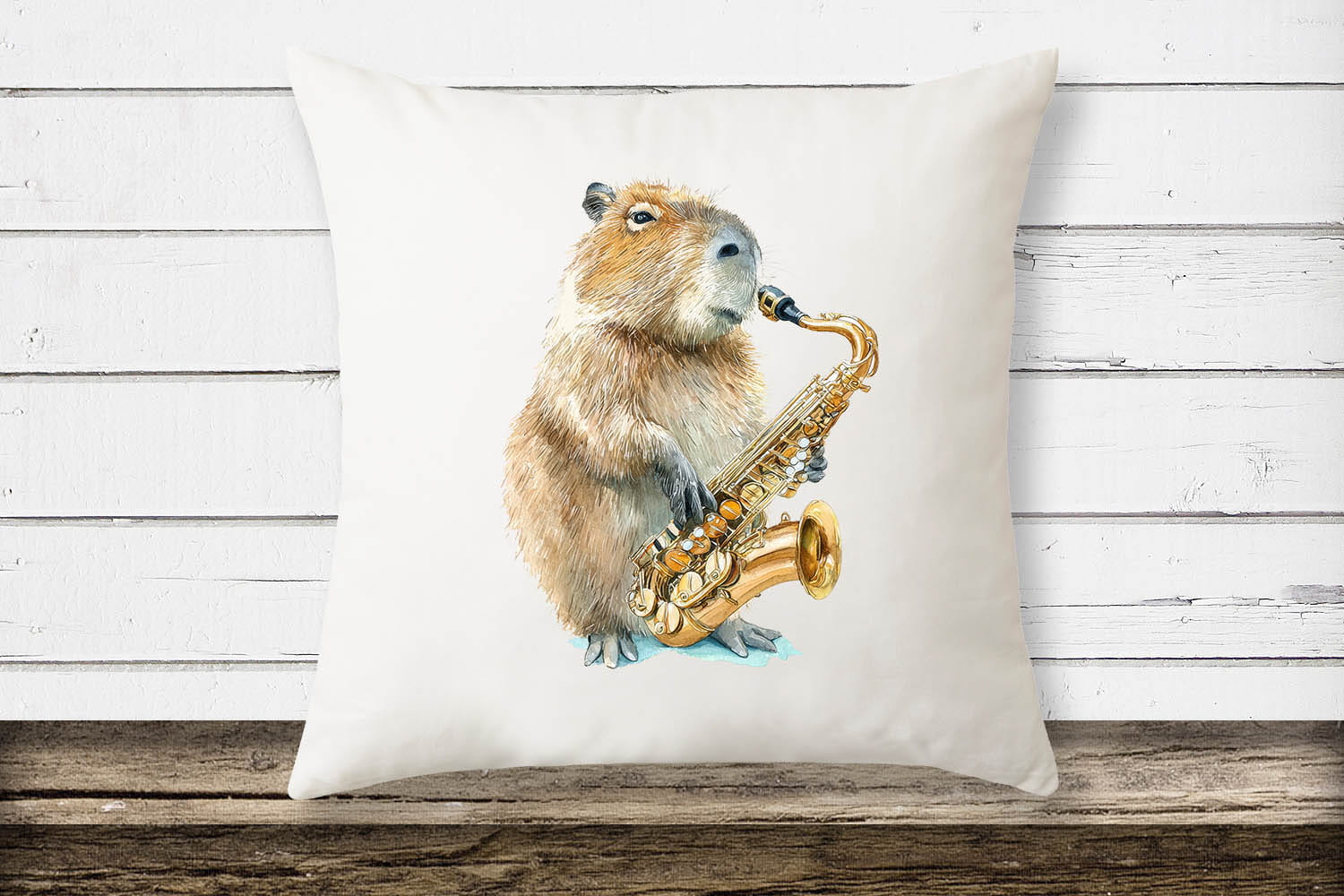 Poduszka z kapibarą grającą na saksofonie - prezent dla saksofonisty