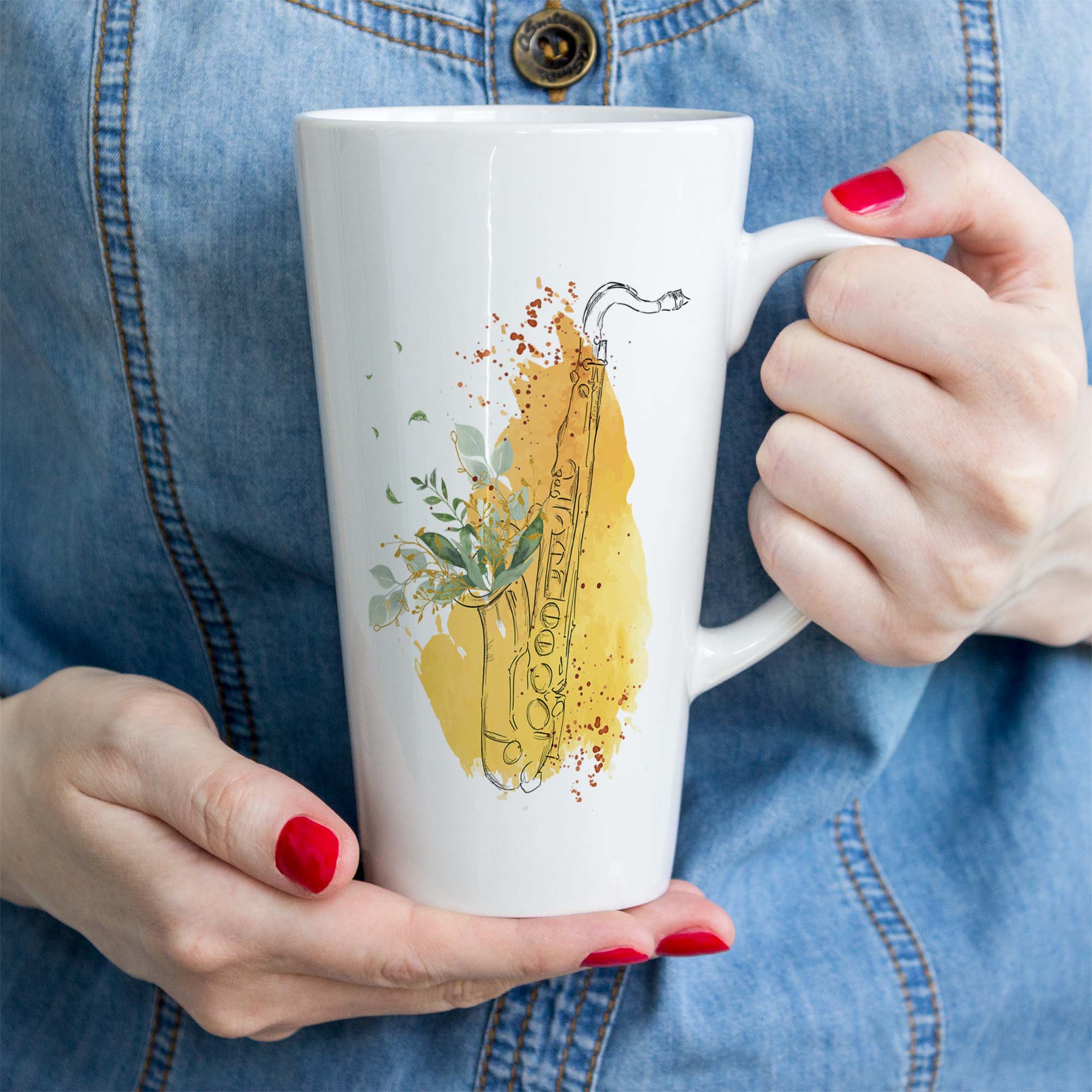 Saksofon - Liście - Kubek latte