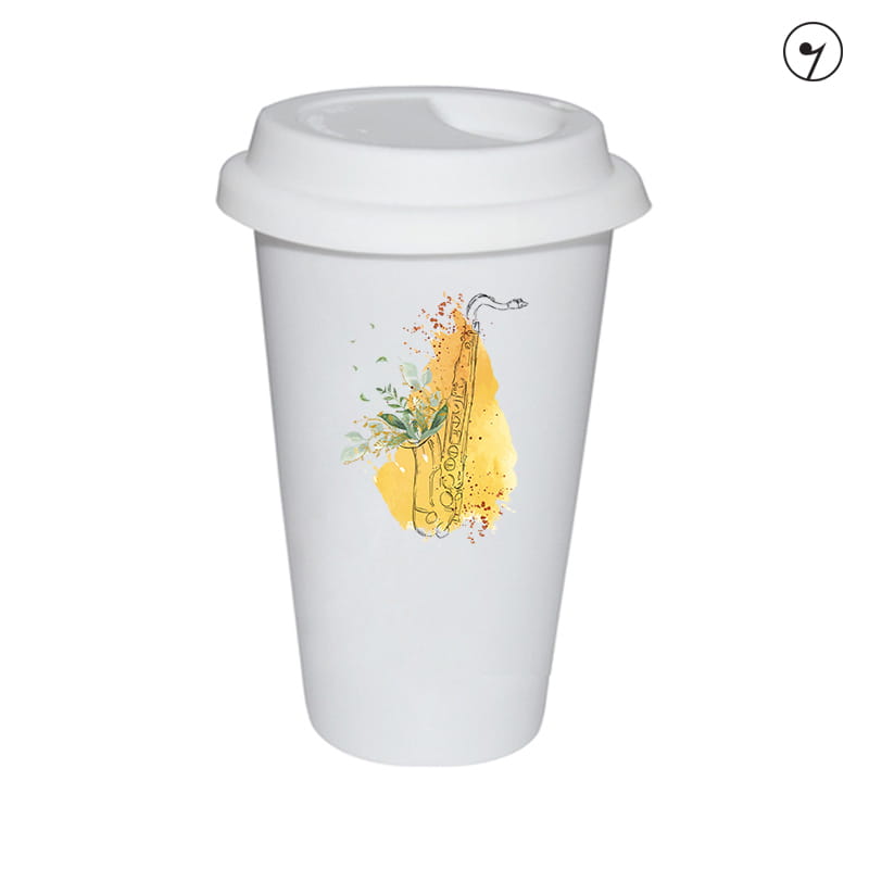 Kubki typu tumbler posiadają podwójną ściankę zapewniającą doskonałą izolację termiczną napojów, zarówno gorących jak i zimnych. Kubek wyposażony jest w wieczko zapobiegające rozlewaniu się napoju np. w samochodzie. Tumbler ze wzorek - Saksofon.