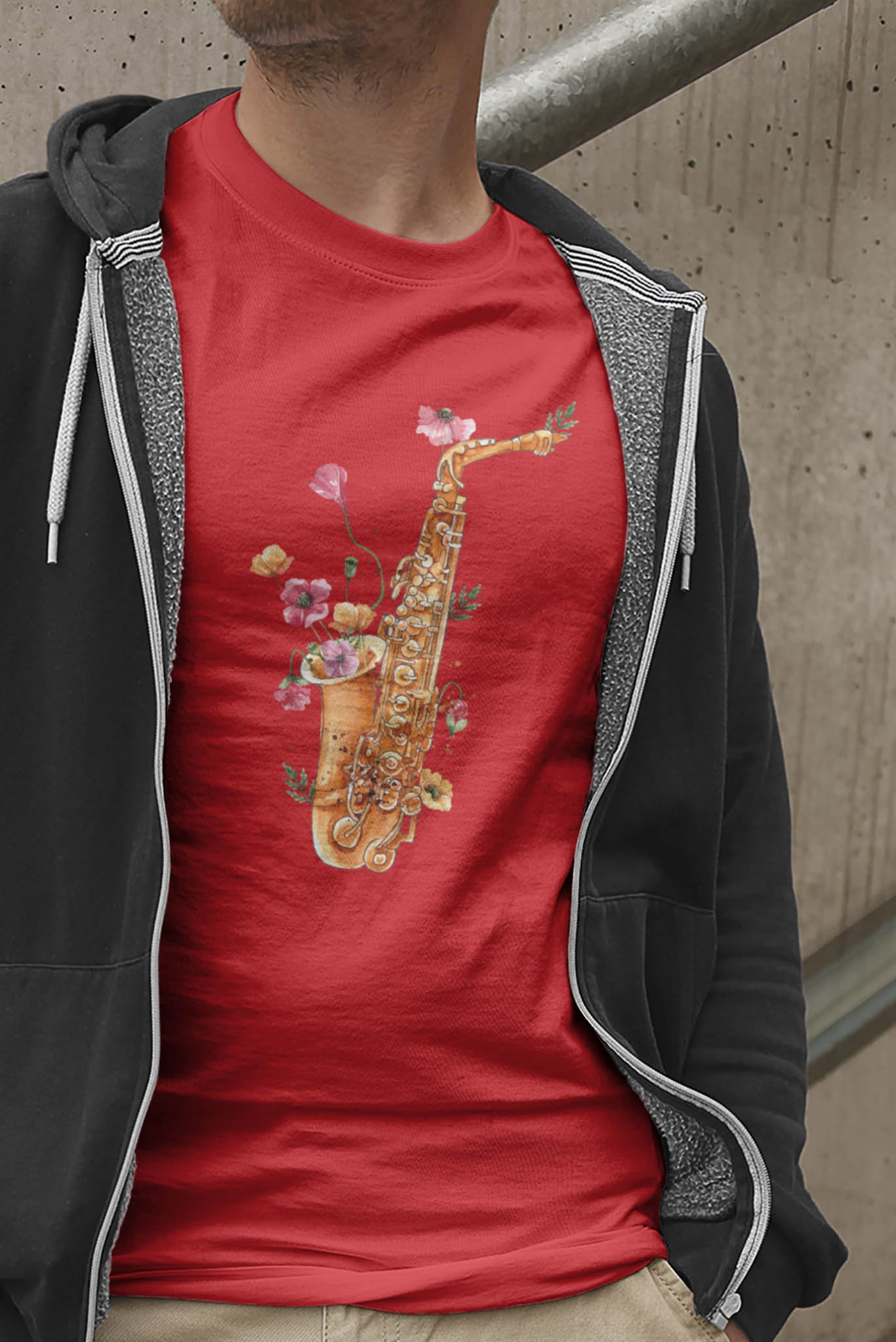Wzór na koszulce - "Saksofon - Maki - Prezent dla saksofonistki - Prezent dla saksofonisty - Koszulka".