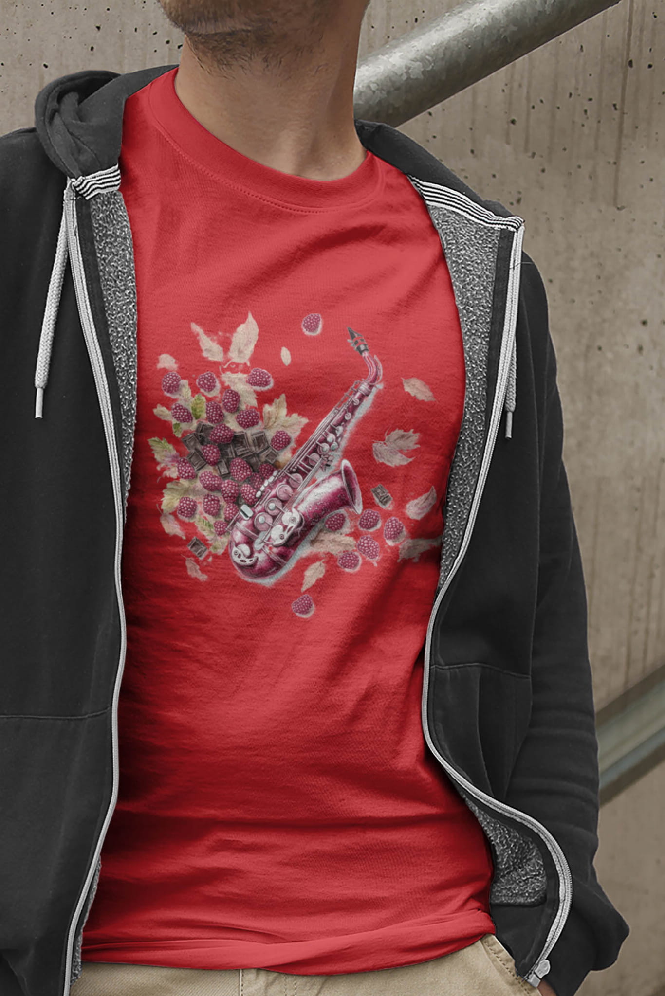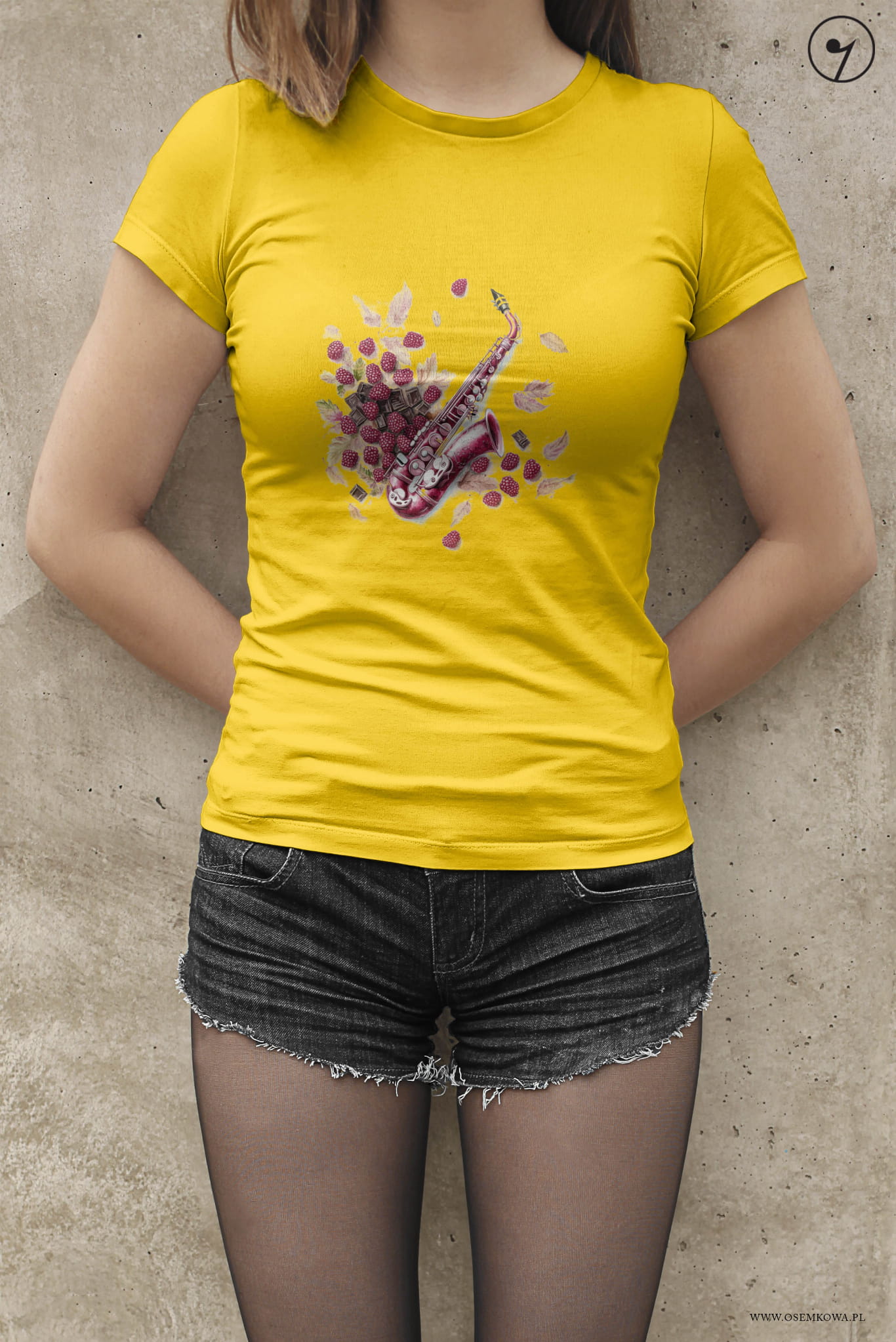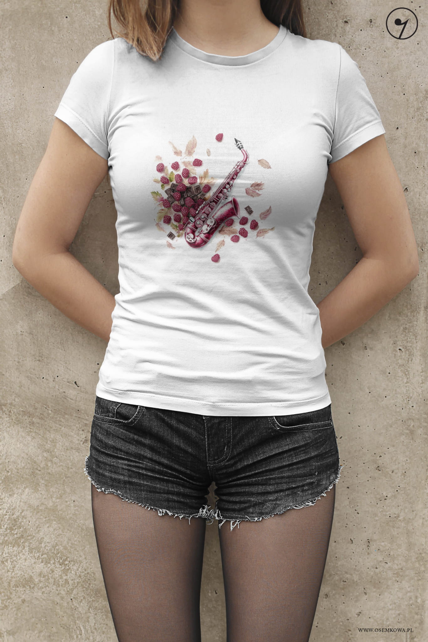 Saksofon - Saksofon w malinach - Prezent dla saksofonistki - Prezent dla saksofonisty - Koszulka z saksofonem – Koszulka