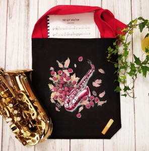Saksofon - Saksofon w malinach - Prezent dla saksofonistki - Torba z saksofonem - Torba na ramię
