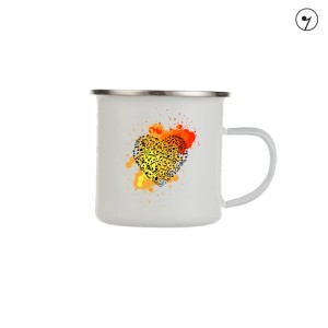Kubek metalowy, emaliowany z uszkiem, Serce z nut - Miłość do muzyki.