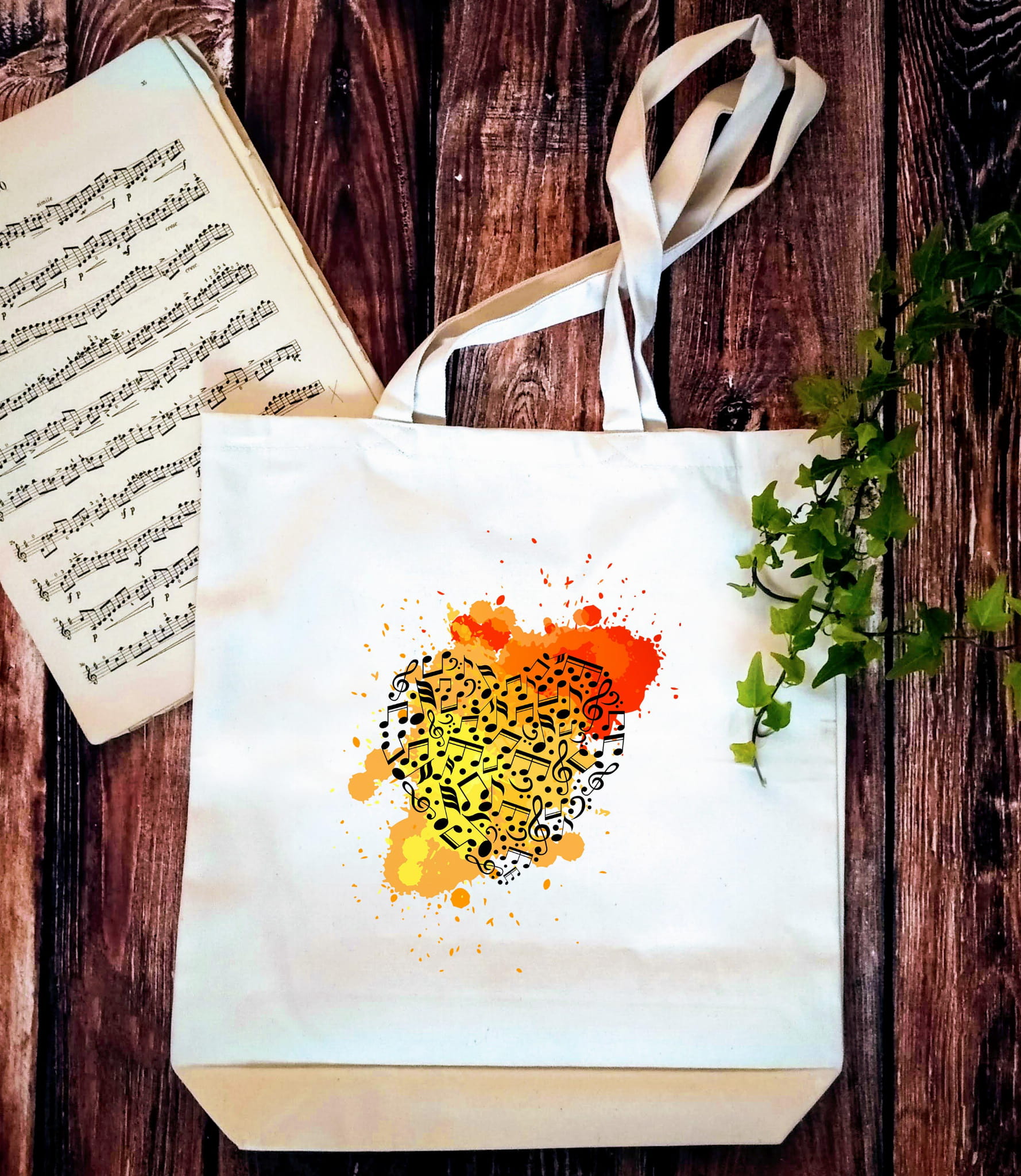 Serce z nut - Nuty - Miłość do muzyki - Torba z 2 uchami
