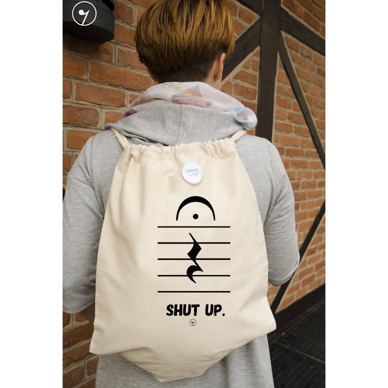 Mocny i solidny worek plecak ze wzorem " Shut up!"