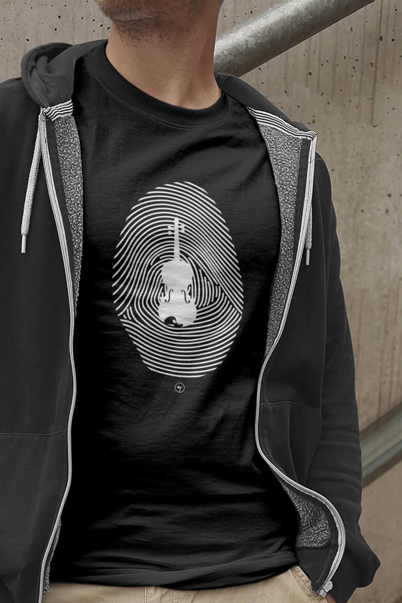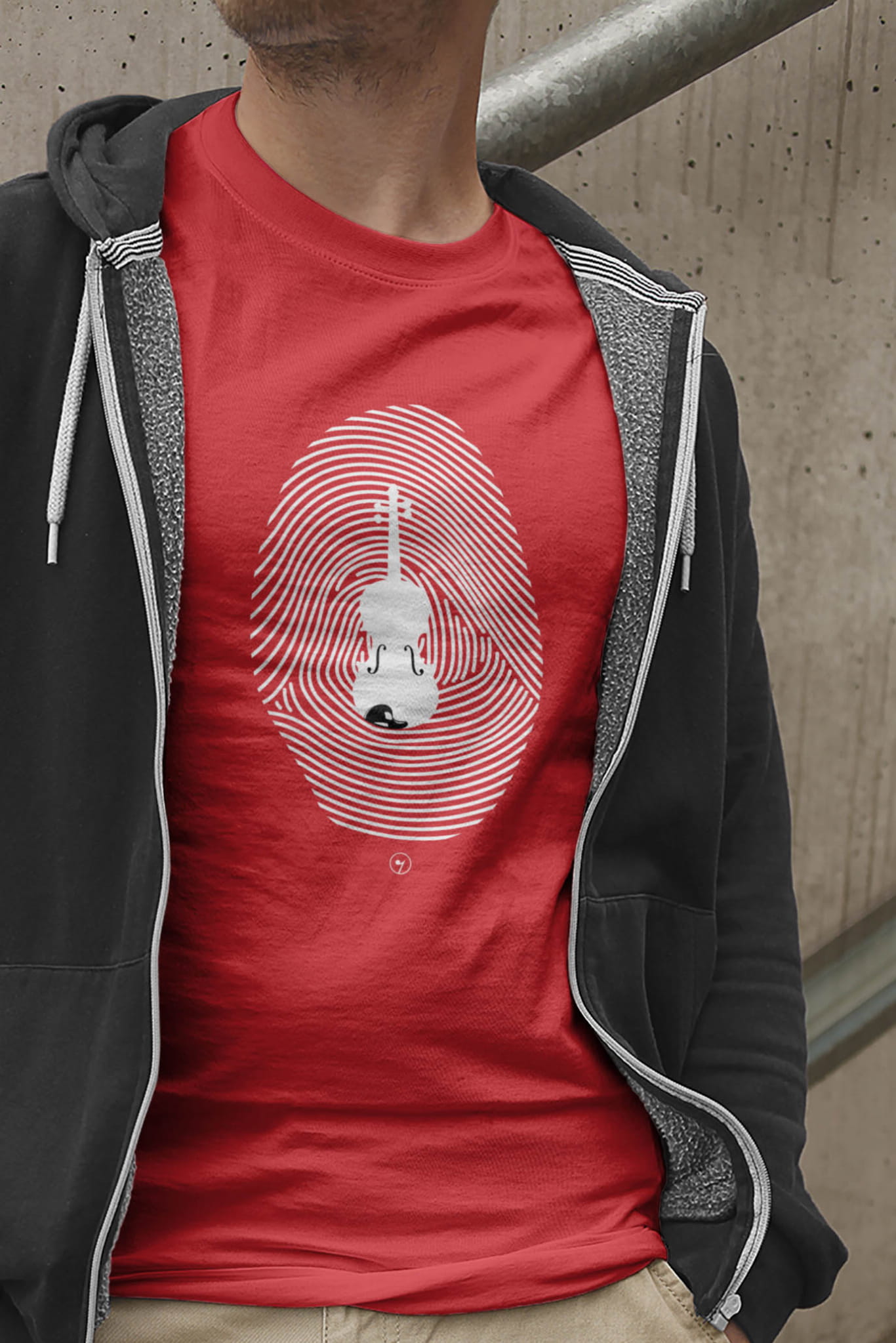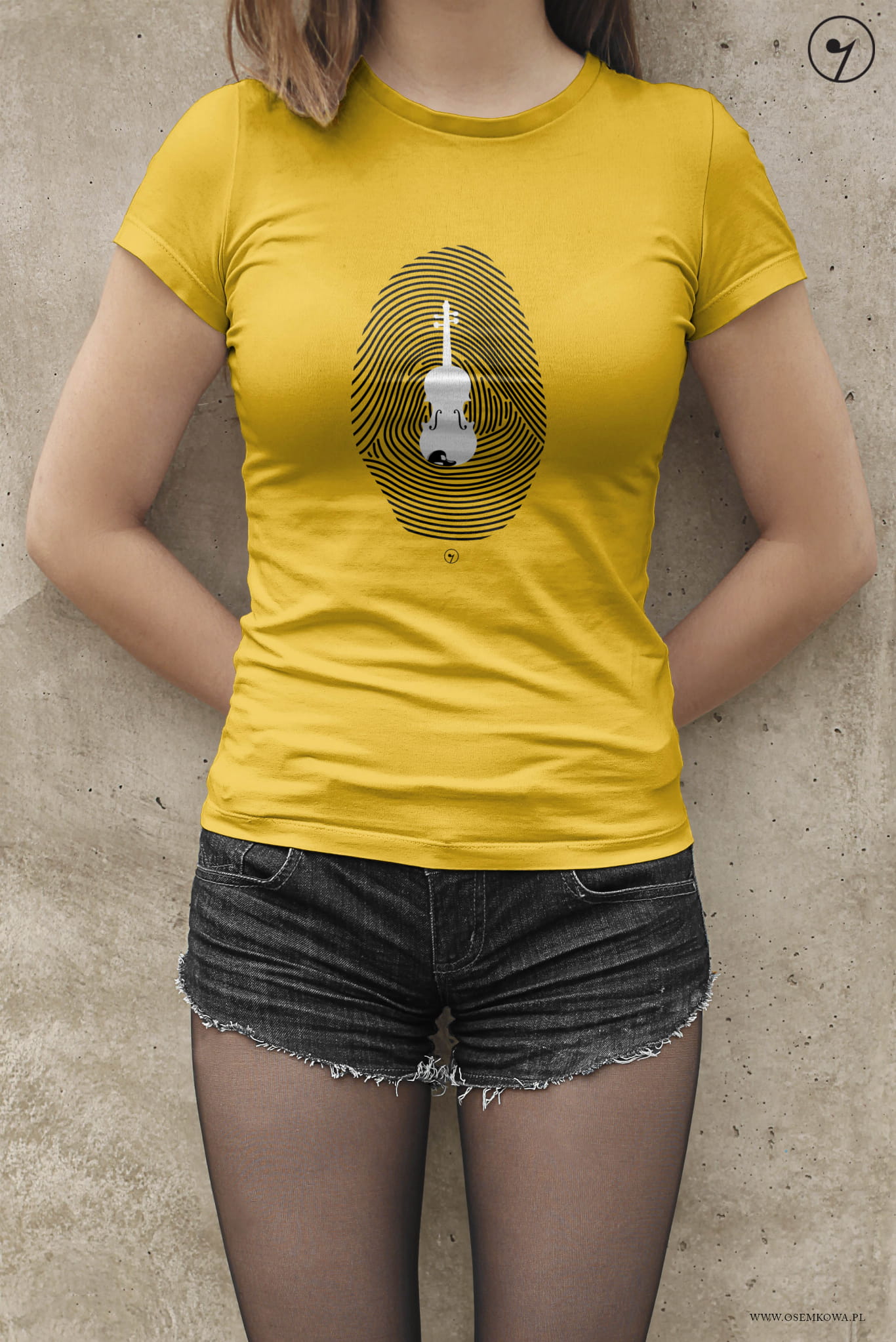 Koszulka ze skrzypcami i odciskiem palca.