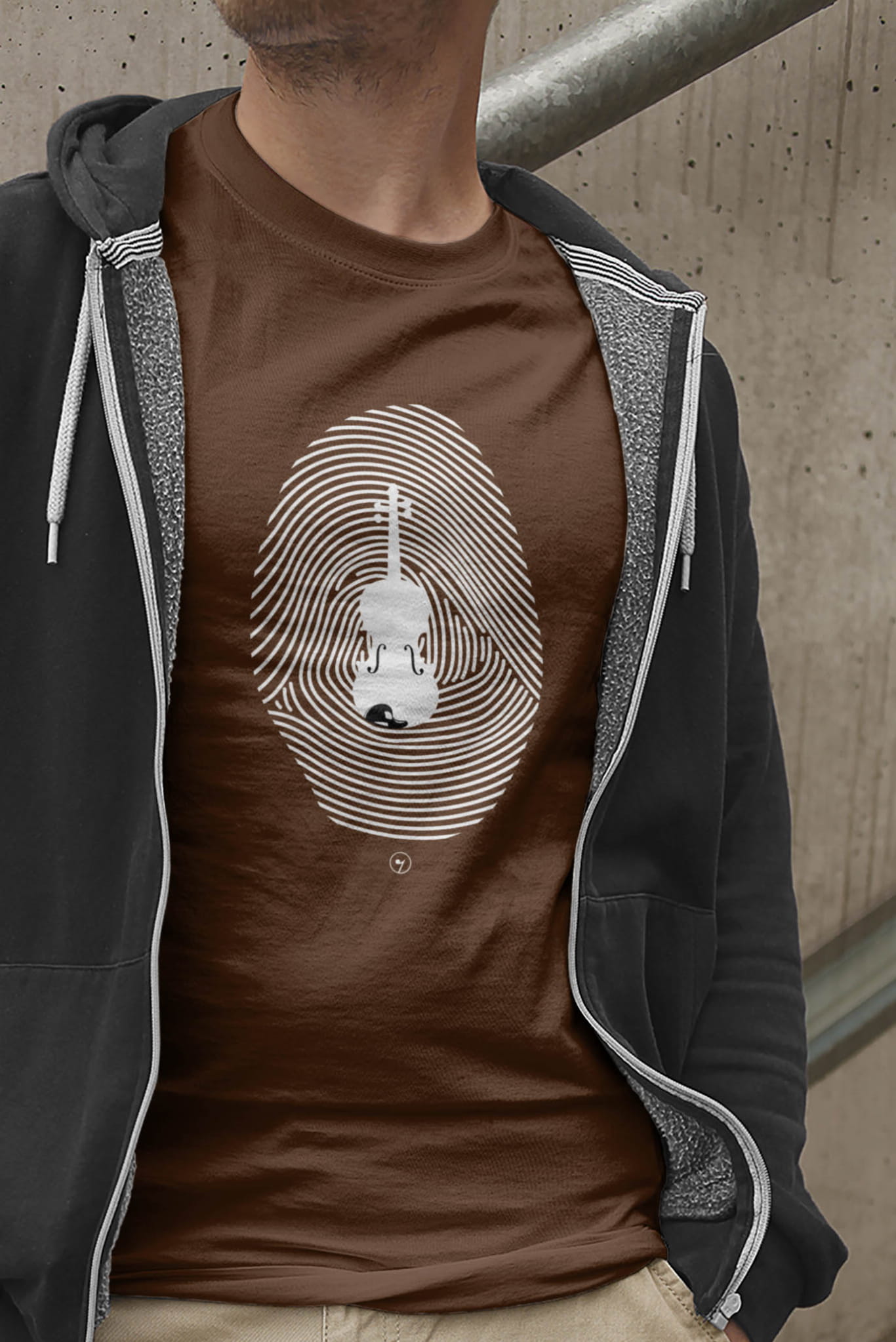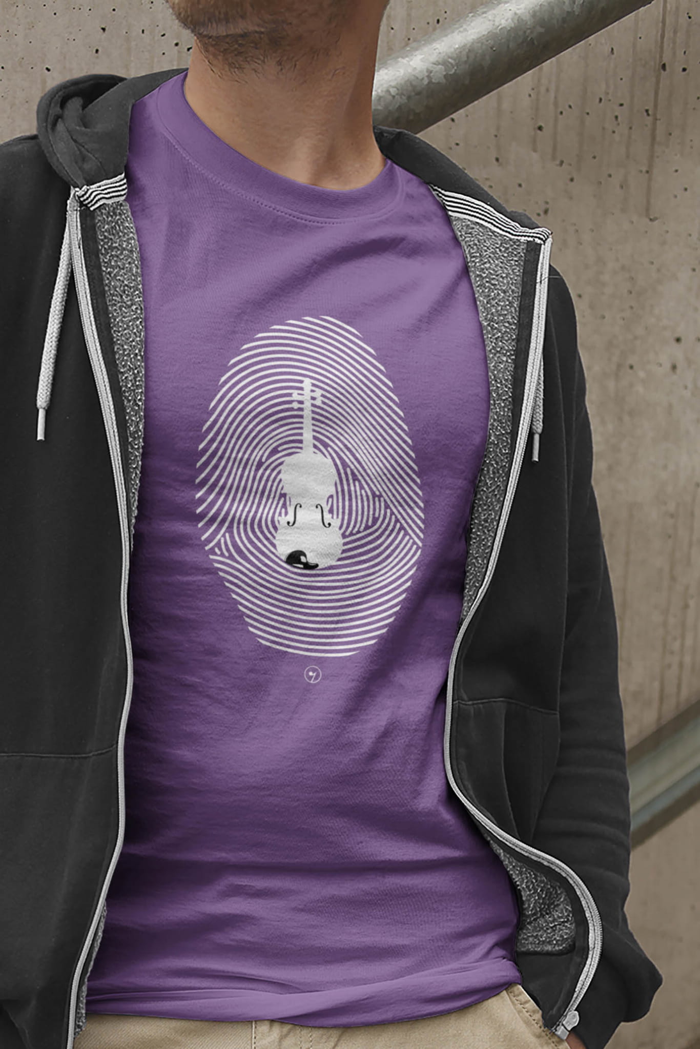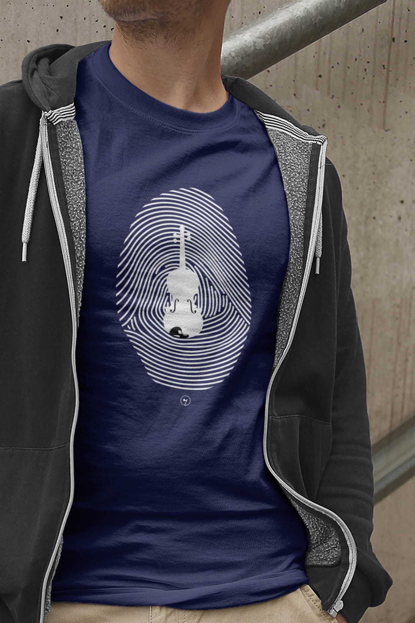 Koszulka ze skrzypcami i odciskiem palca.