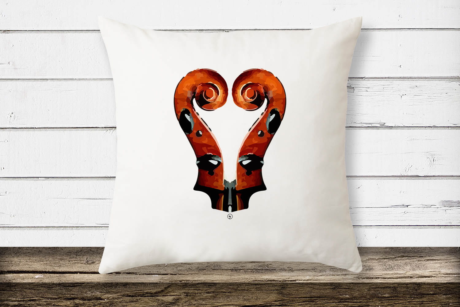 Biała poduszka z miękkiej mikrofibry ze skrzypcami.