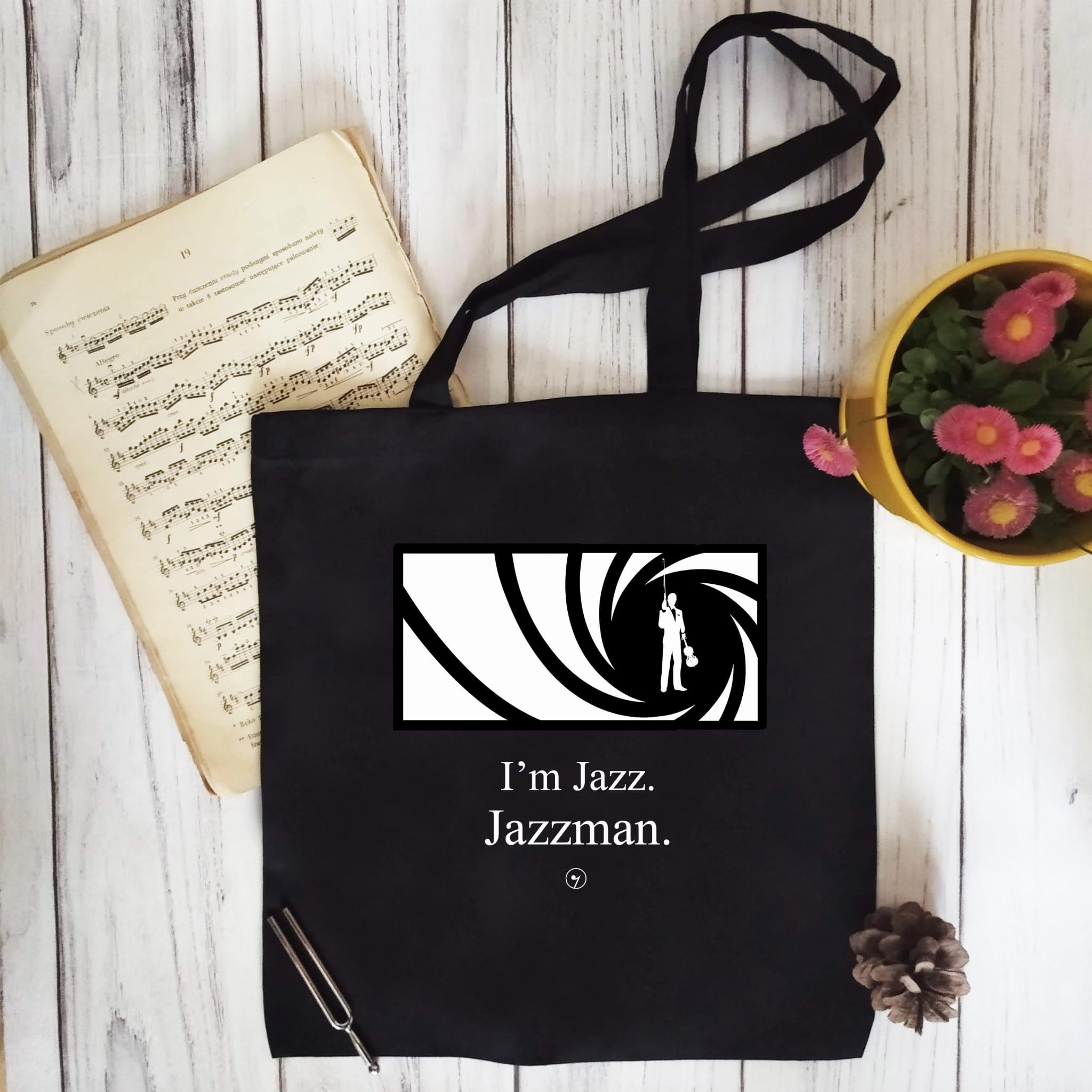Torba na nuty i inne muzyczne szpargały. Może się przydać również na zakupy czy też ciężką teczkę z racji na mocny materiał (to znacznie mocniejsza torba, niż zwykle są sprzedawane). I'm Jazz Jazzman.