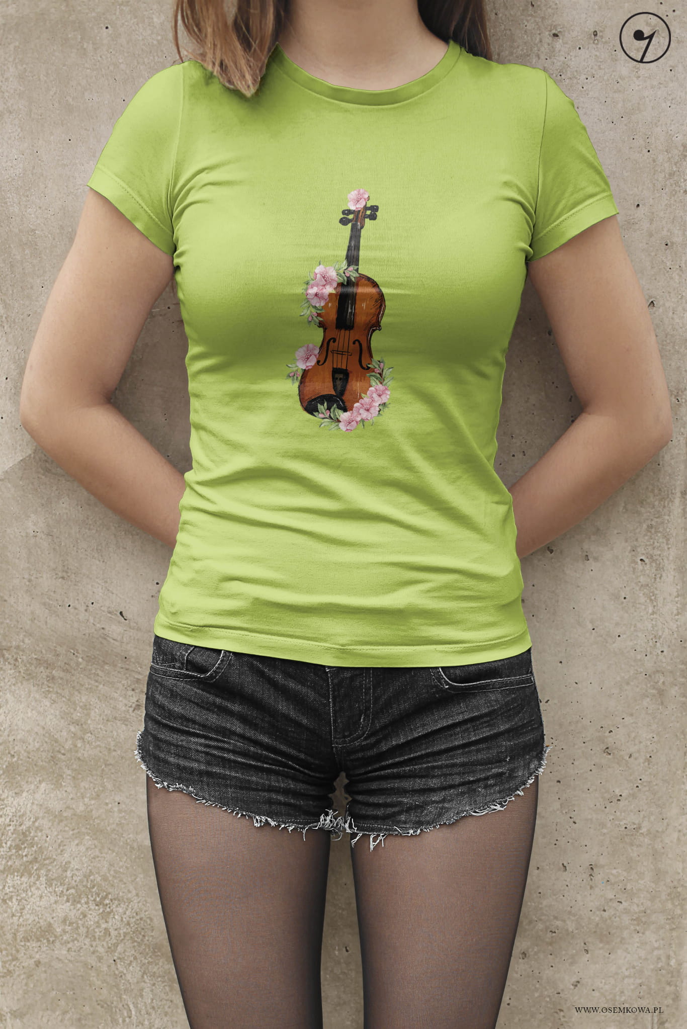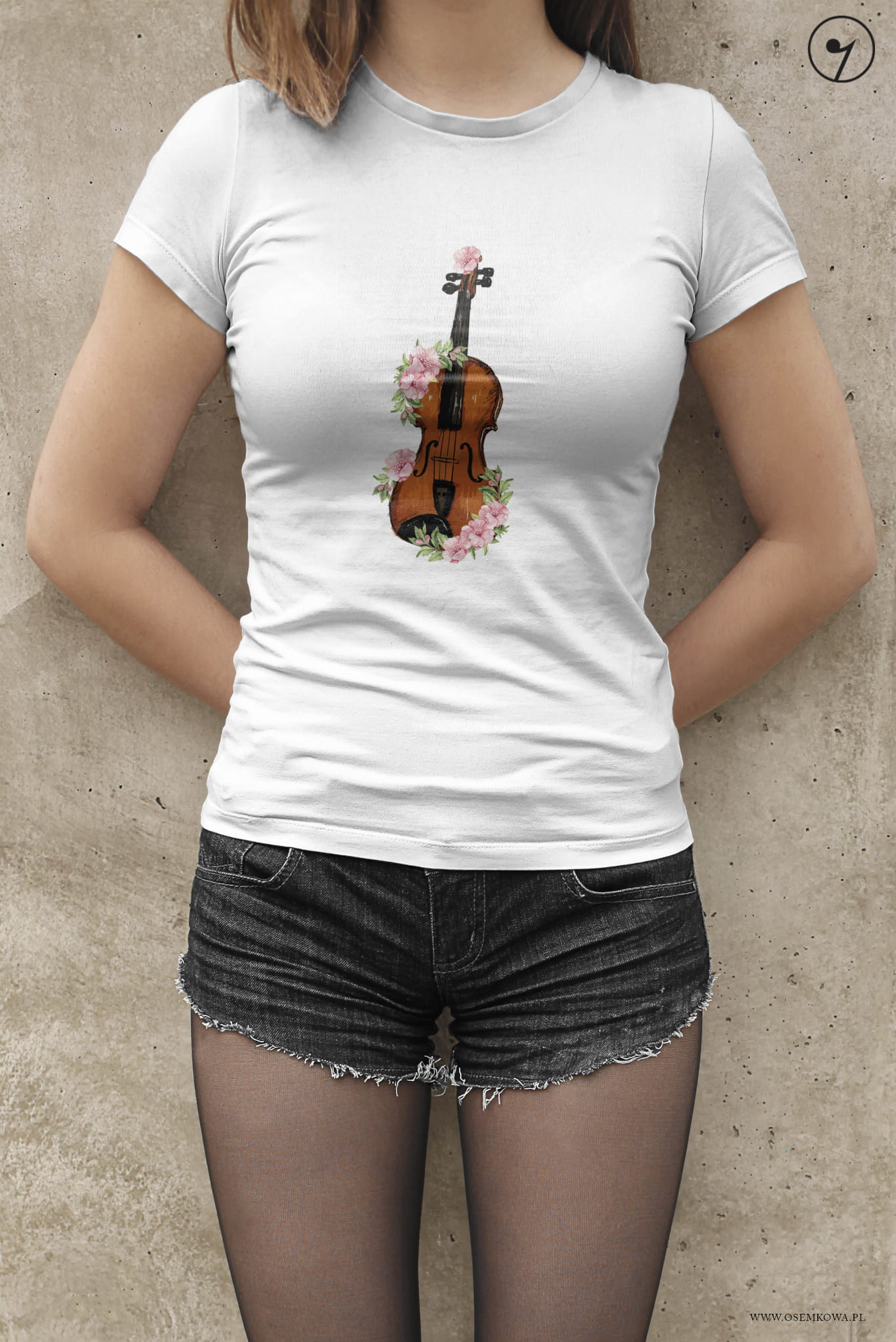 100% bawełna półczesana Ringspun. Wzmocnienie taśmą na szyi.