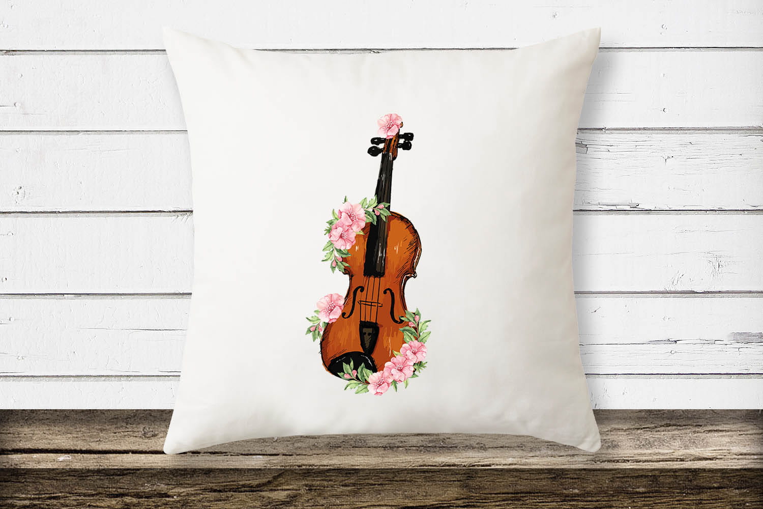 Biała poduszka z miękkiej mikrofibry ze skrzypcami.