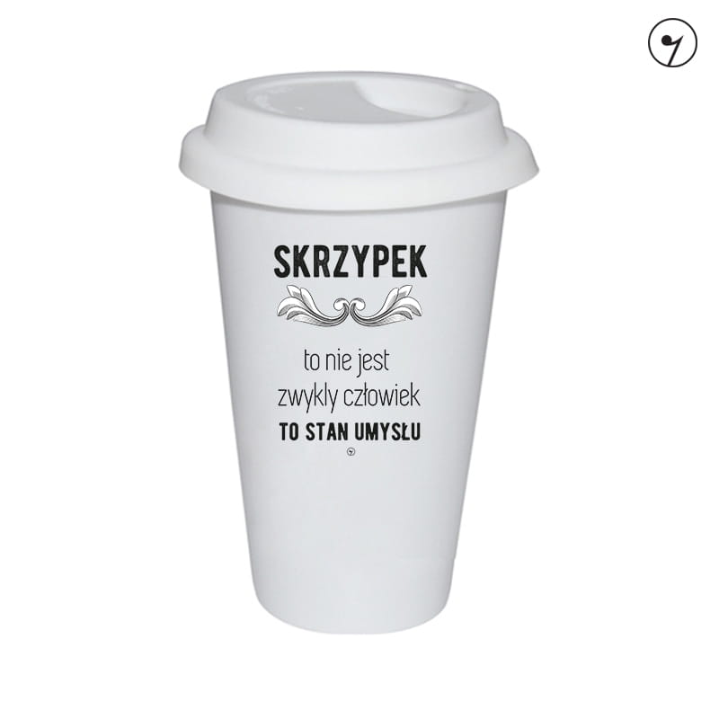 Kubki typu tumbler posiadają podwójną ściankę zapewniającą doskonałą izolację termiczną napojów, zarówno gorących jak i zimnych. Kubek wyposażony jest w wieczko zapobiegające rozlewaniu się napoju np. w samochodzie. Wzór: Skrzypce - Skrzypek - Stan umysłu.
