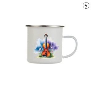 Kubek emaliowany „Skrzypce – Stokrotki” – idealny prezent dla skrzypaczki i skrzypka
