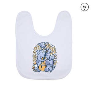 Biały śliniak frotte dziecięcy, słoń muzyczny.