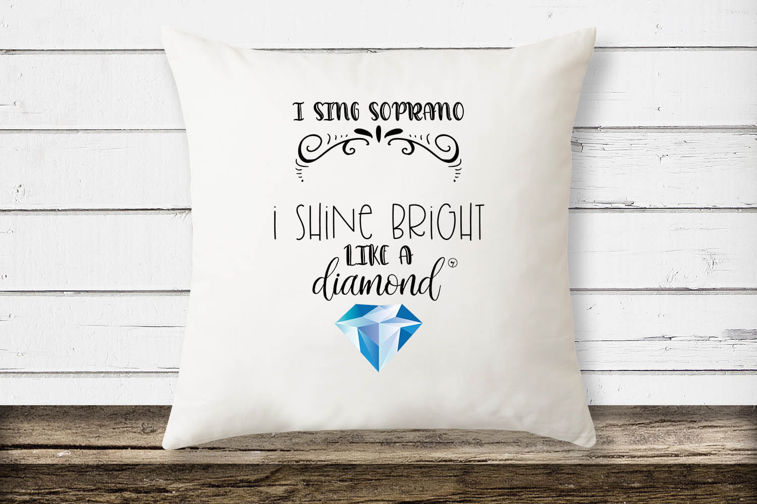 Biała poduszka z miękkiej mikrofibry, ze wzorem - I sing soprano i shine bright like a diamond.