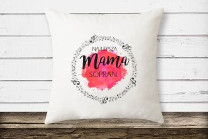 Biała poduszka z miekkiej mikrofibry, dla mamy, która śpiewa sopranem.