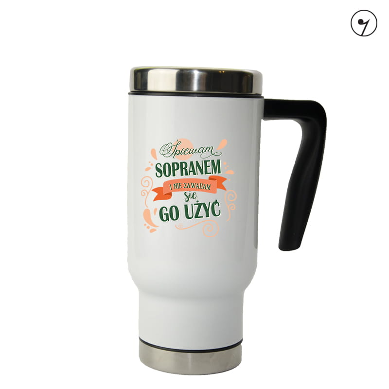 Kubek termiczny dla sopranów ze wzorem - "Śpiewam sopranem i nie zawaham się go użyć"