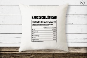 Biała poduszka z miękkiej mikrofibry, ze wzorem - Nauczyciel śpiewu - Składniki odżywcze