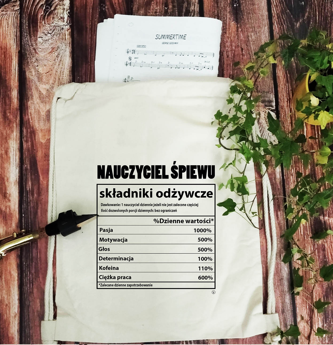 Mocny i solidny worek plecak.Nauczyciel śpiewu - Składniki odżywcze