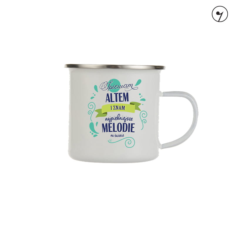 Kubek metalowy, emaliowany z uszkiem. Śpiewam altem - Alt - Kubek emaliowany