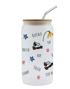Stepowanie - Nazwy kroków stepowania - Prezent dla miłośnika stepowania - Szklanka z bambusową pokrywką i rurką
