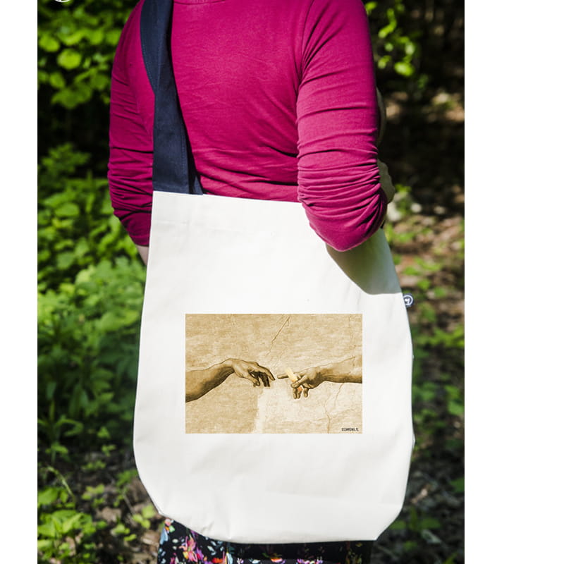 Duża torba na jedno ramię, z dnem, wymiary: 38x44cm, gramatura 280g/m2. Ramię granatowe.