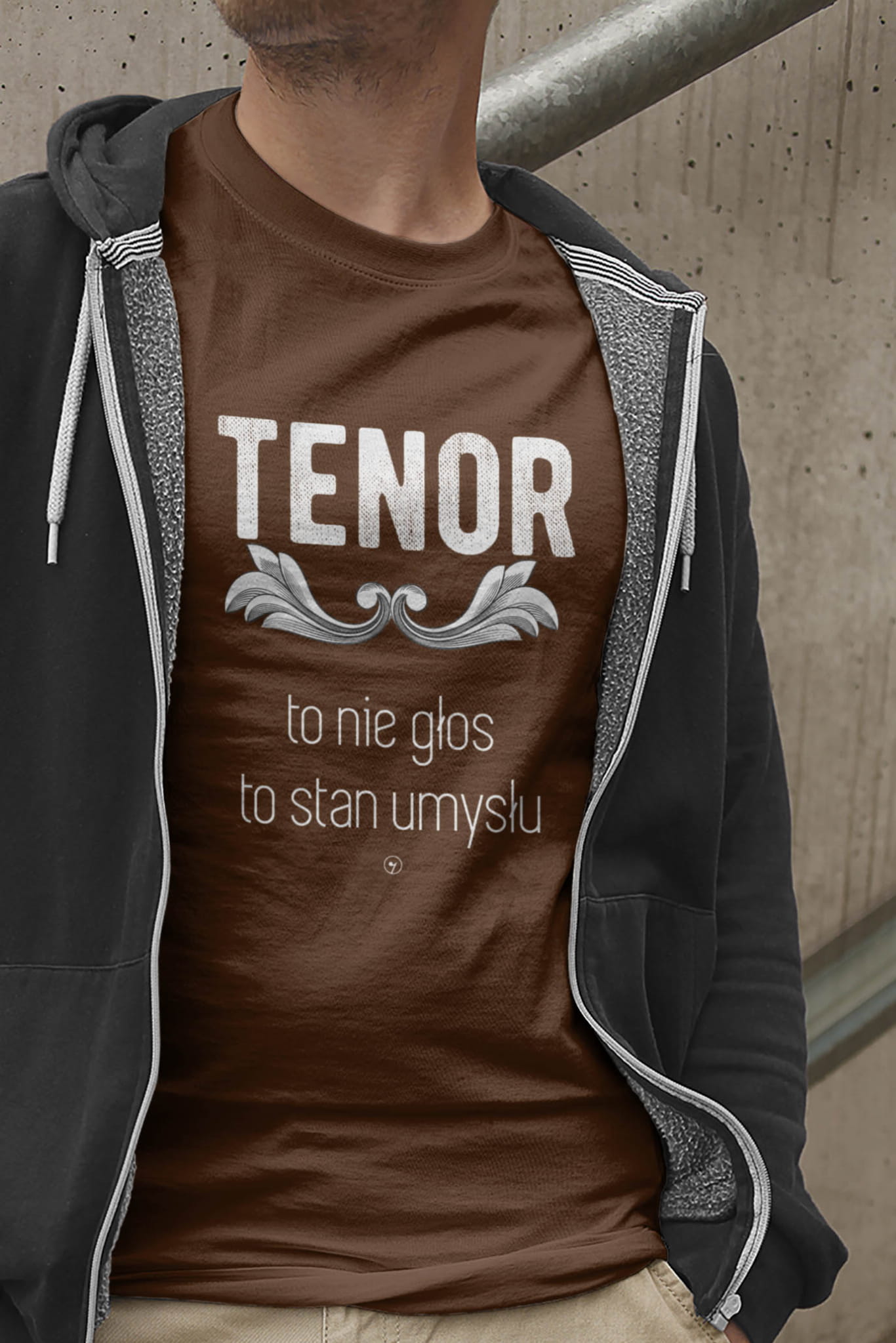 100% bawełna półczesana Ringspun. Wzmocnienie taśmą na szyi.