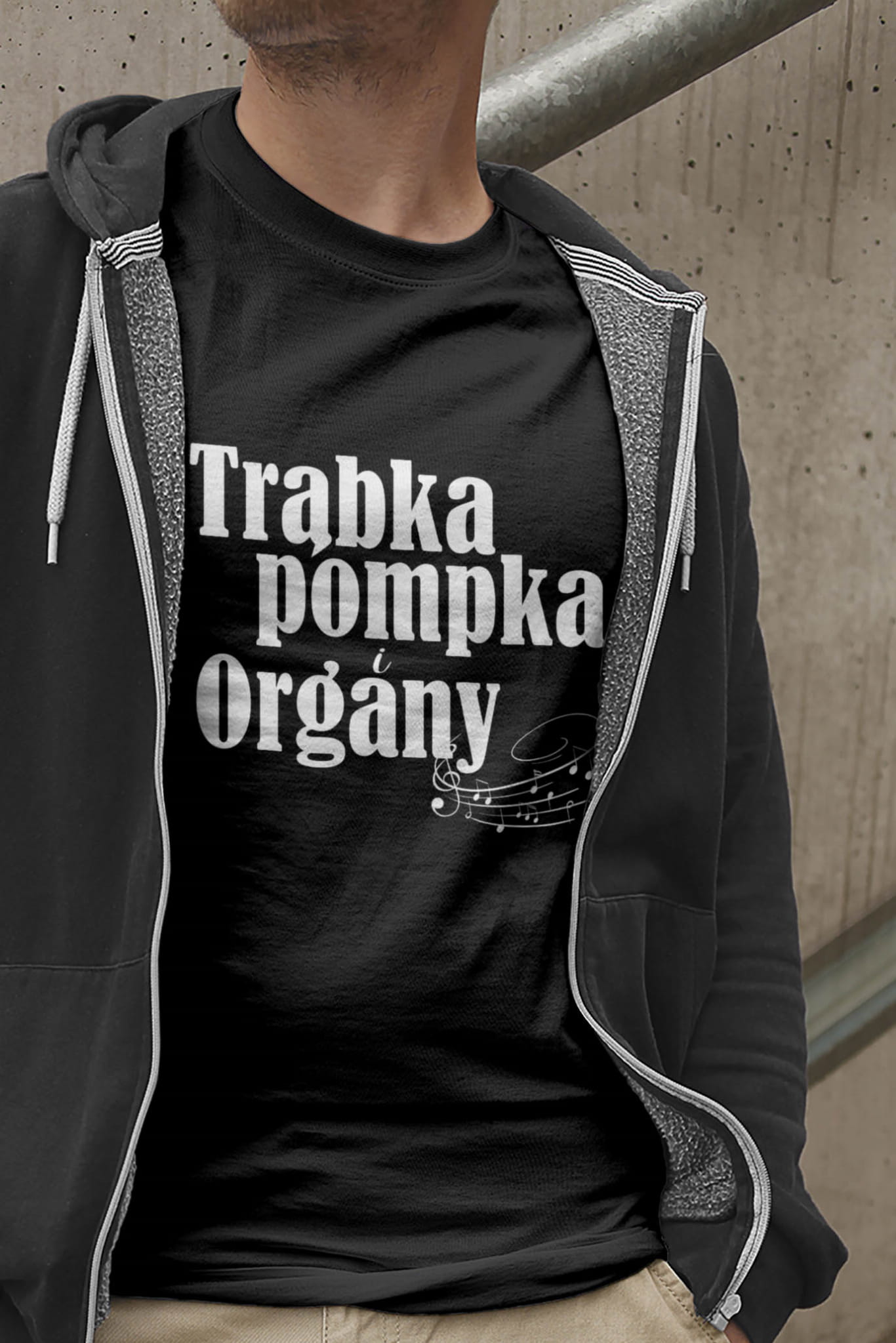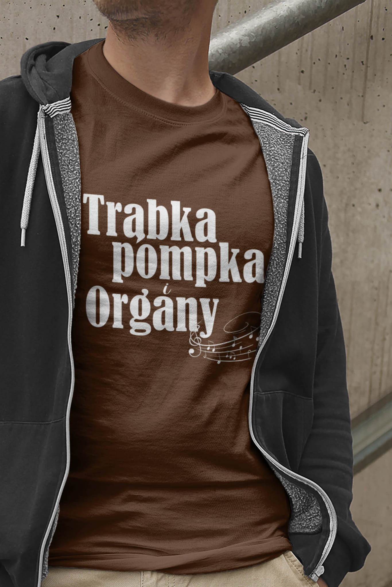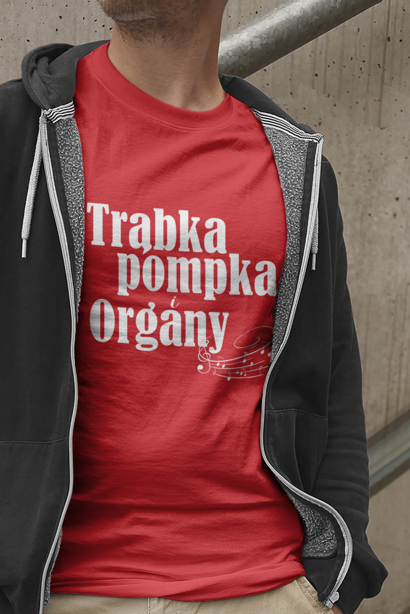 Koszulka dla muzyków. Trąbka, pompka i organy