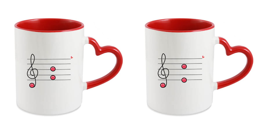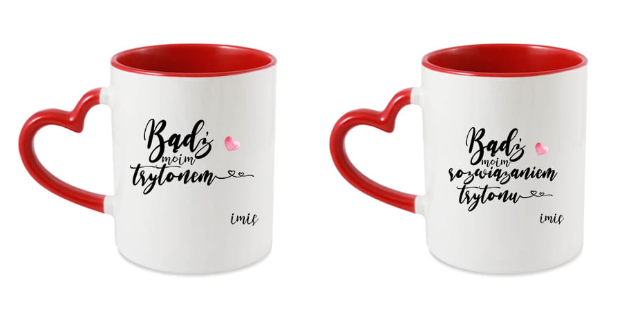 Zestaw dwóch kubków z sercem i czerwonym wnętrzem.