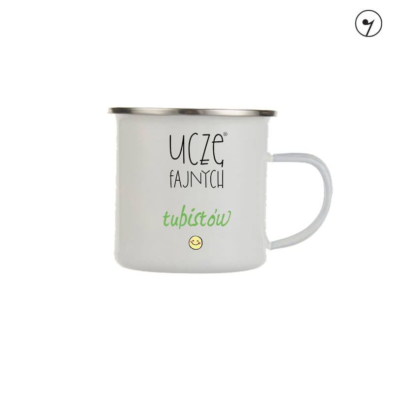 Emaliowany kubek muzyczny, który jest super prezentem dla każdego nauczyciela tuby, a w szczególności dla tego, który uczy fajnych tubistów. Kubki o pojemność 300 ml. Kubek koloru białego ze srebrnym rantem, metalowy, emaliowany z uszkiem.