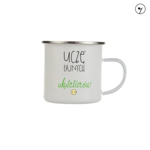 Wzór na kubku - "Nauczyciel – Ukulele - Uczę fajnych ukulelistów - Kubek emaliowany".