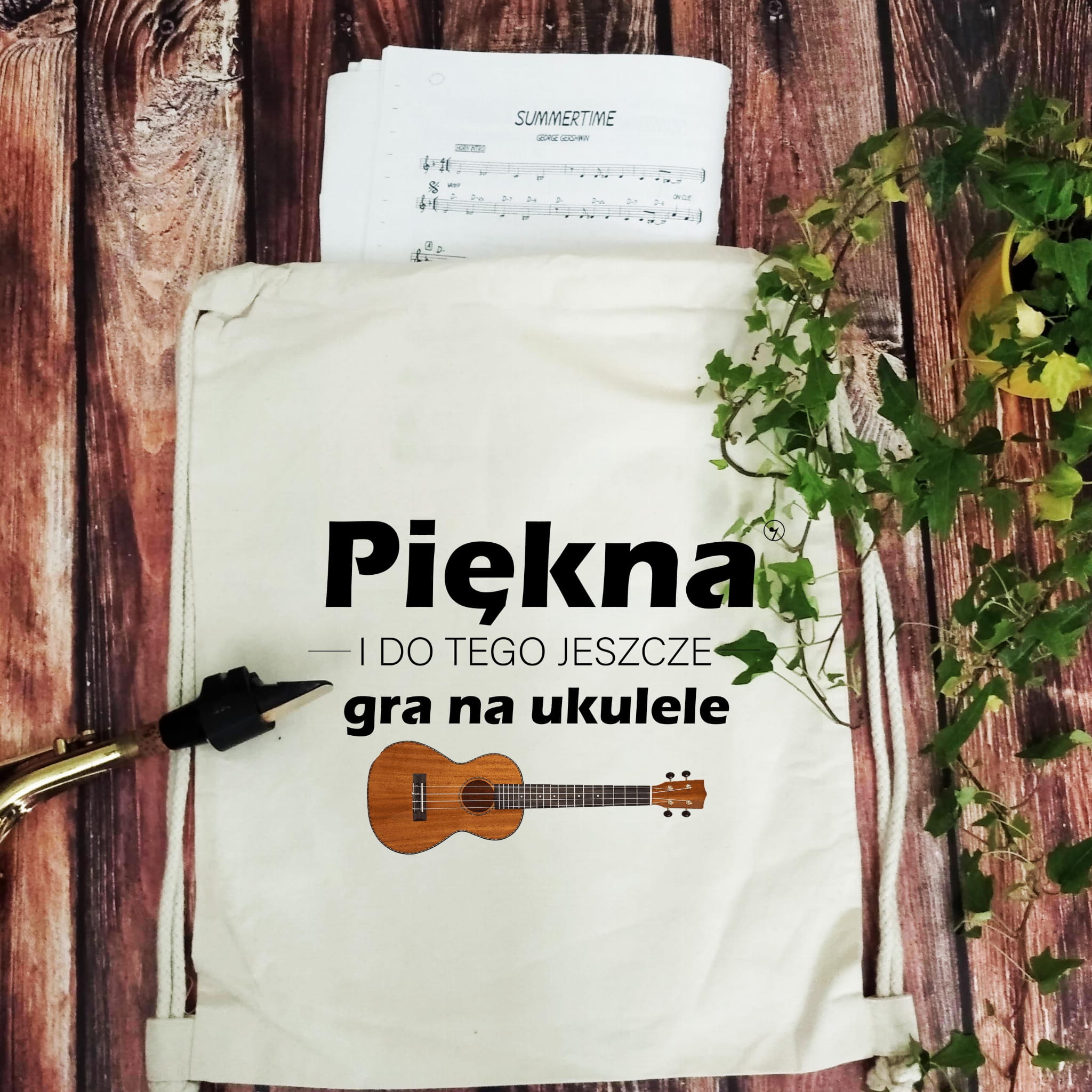 Ukulele - Piękna i gra na ukulele - Prezent dla ukulelistki - Worek plecak
