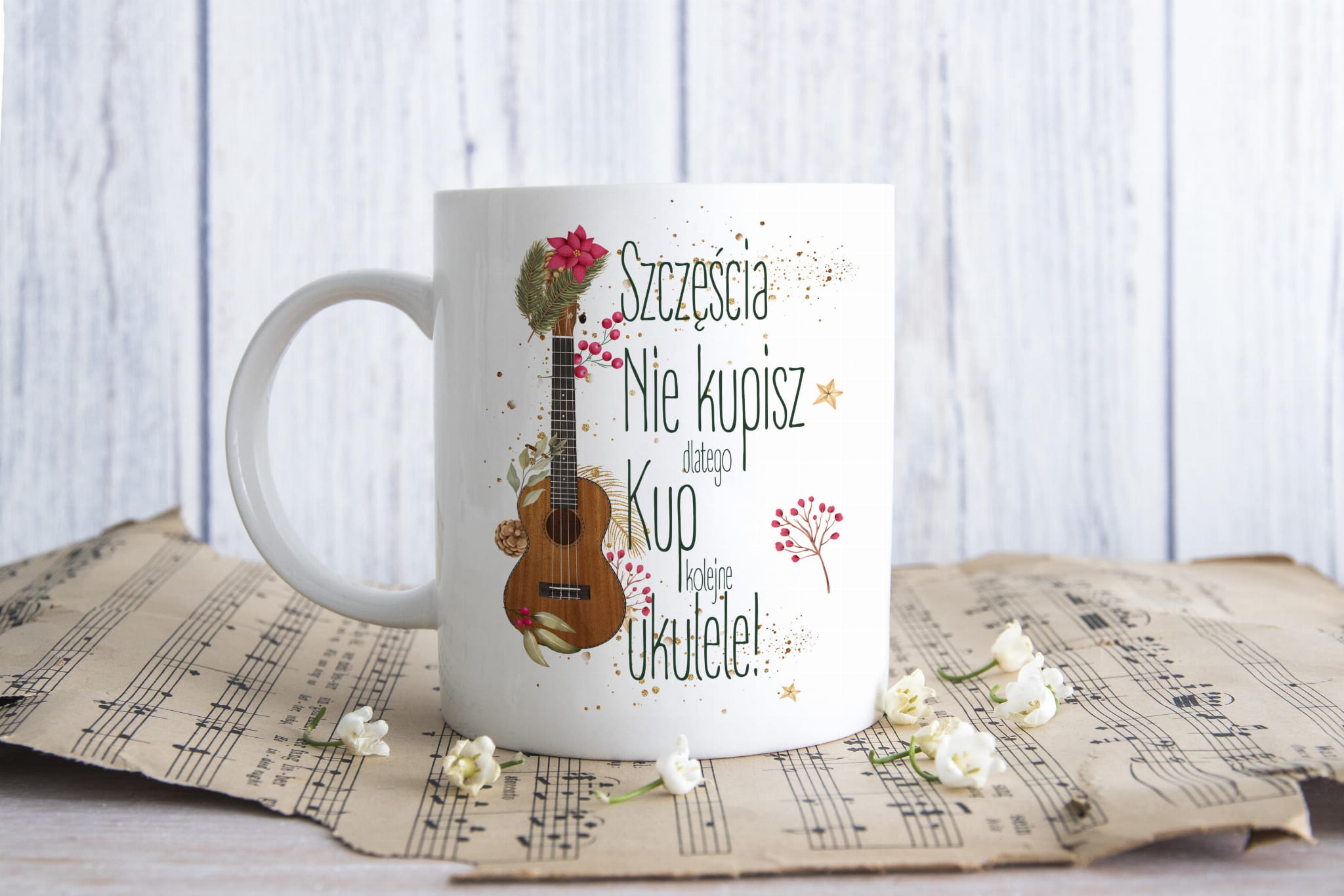 Kubek biały, Ukulele - Szczęścia nie kupisz daltego kup kolejne ukulele -.