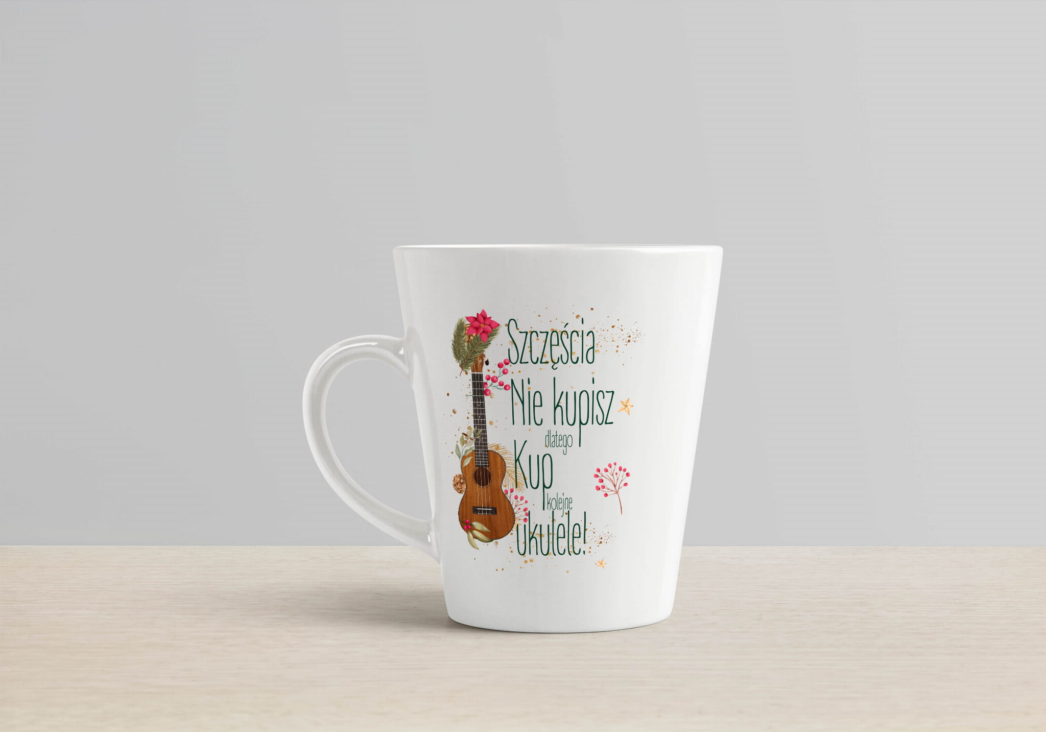 Kubek ceramiczny latte 300ml i 450ml. Szczęścia nie kupisz dlatego kup kolejne ukulele