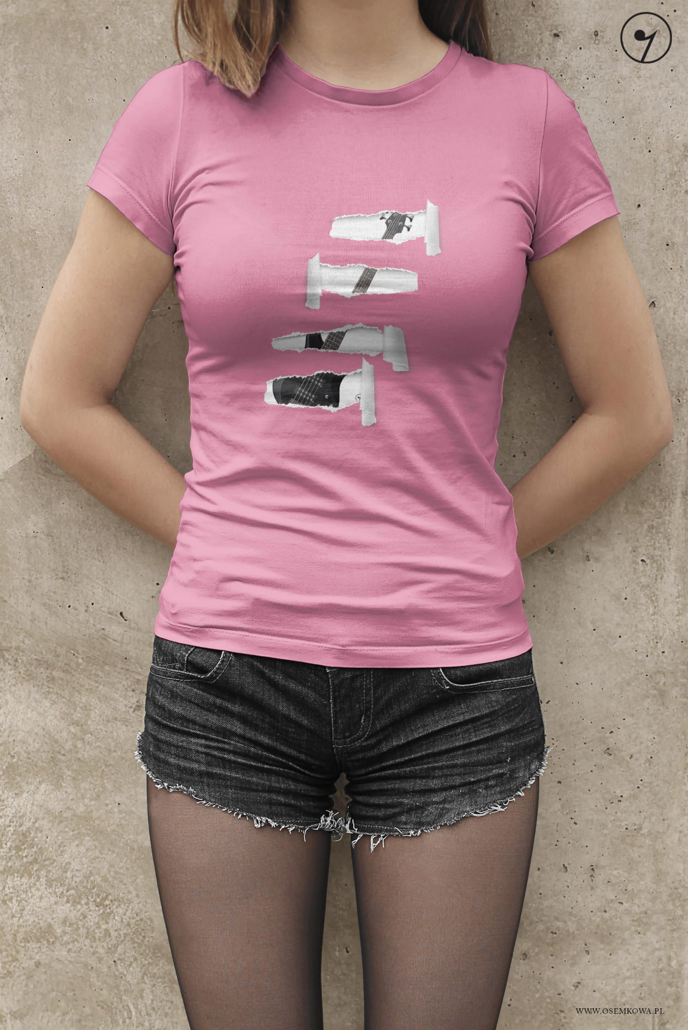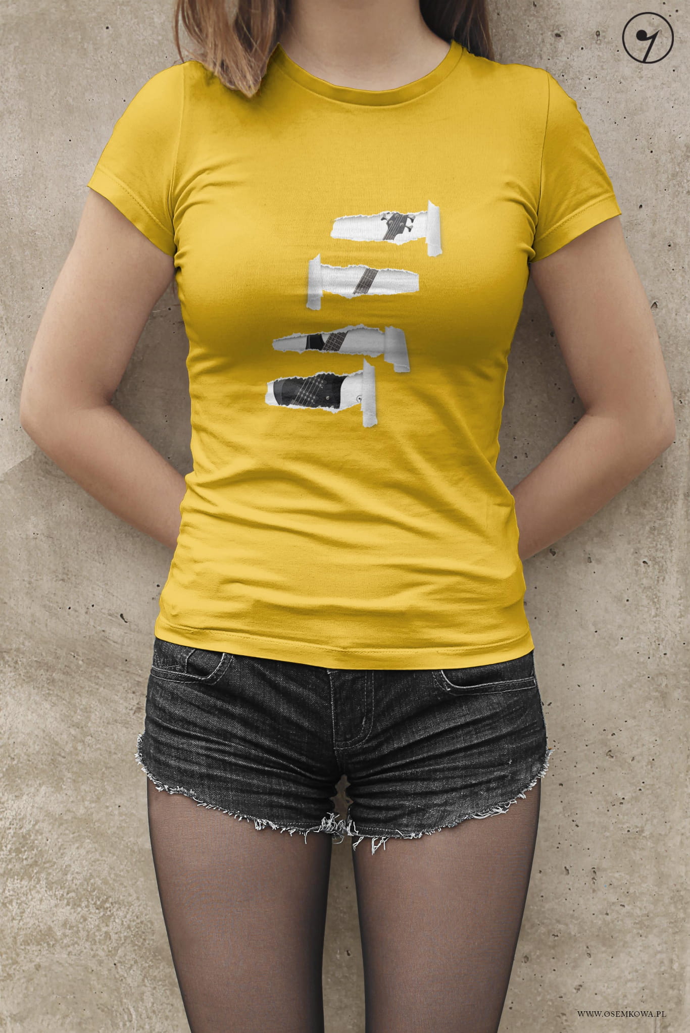 100% bawełna półczesana Ringspun. Wzmocnienie taśmą na szyi.