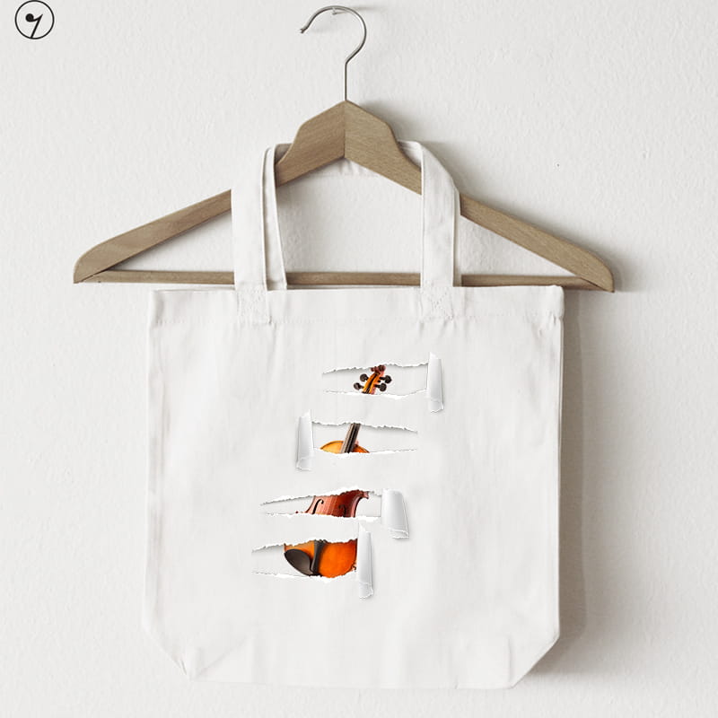 Torba na nuty i inne muzyczne szpargały. Skrzypce - urywki papieru.