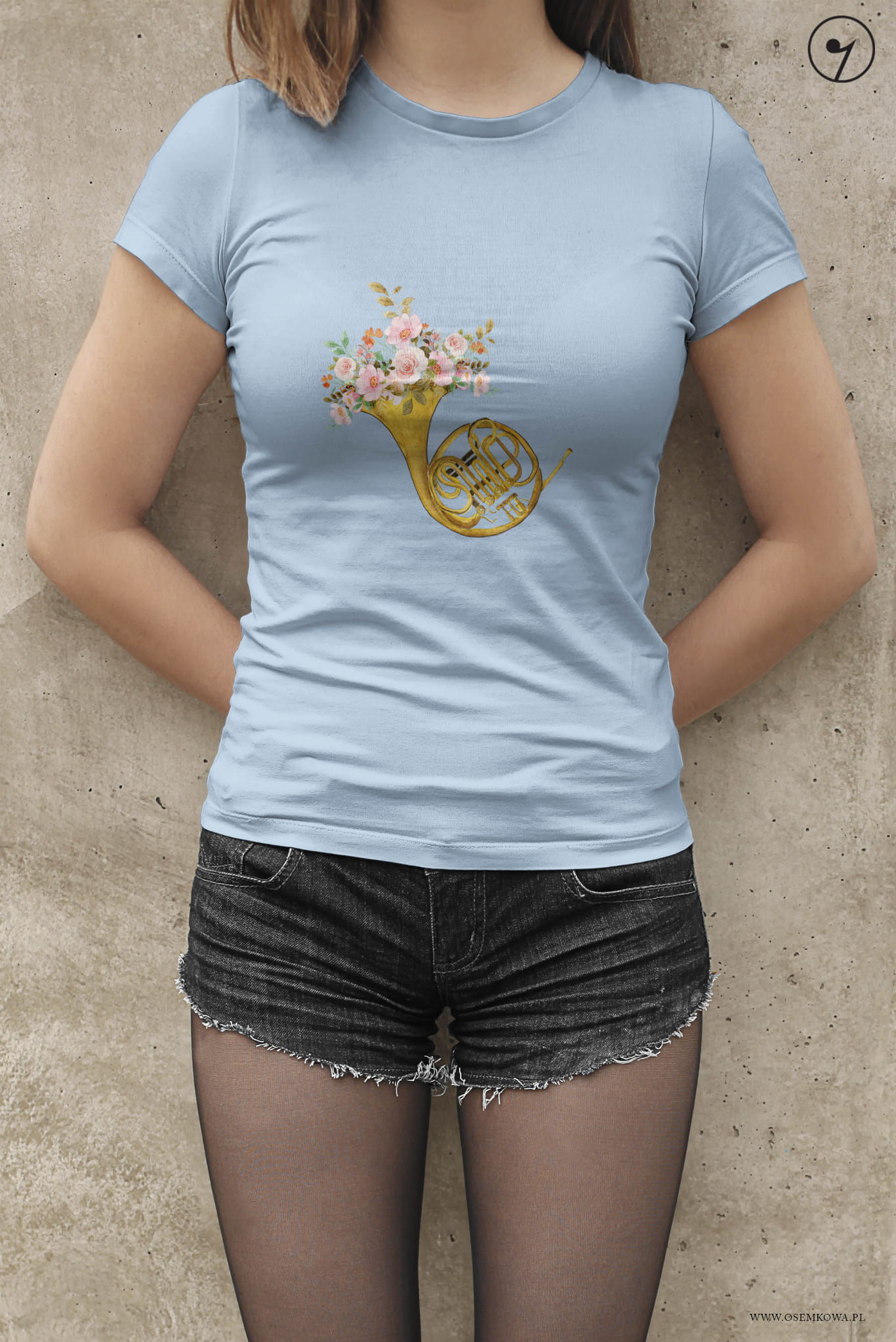 100% bawełna półczesana Ringspun. Wzmocnienie taśmą na szyi.