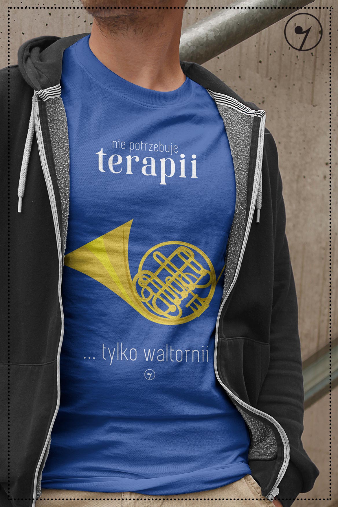 Koszulka z waltornią. Prezent dla muzyka.