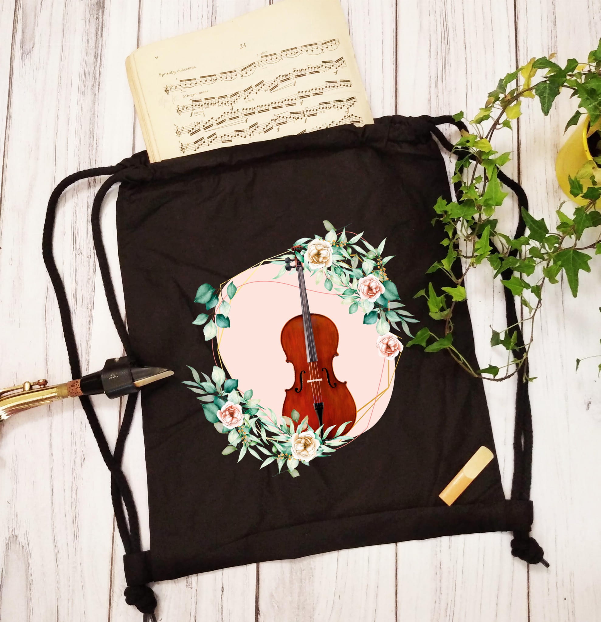 Wiolonczela - Kwiaty - prezent dla wiolonczelistki - prezent dla wiolonczelisty - Worek plecak