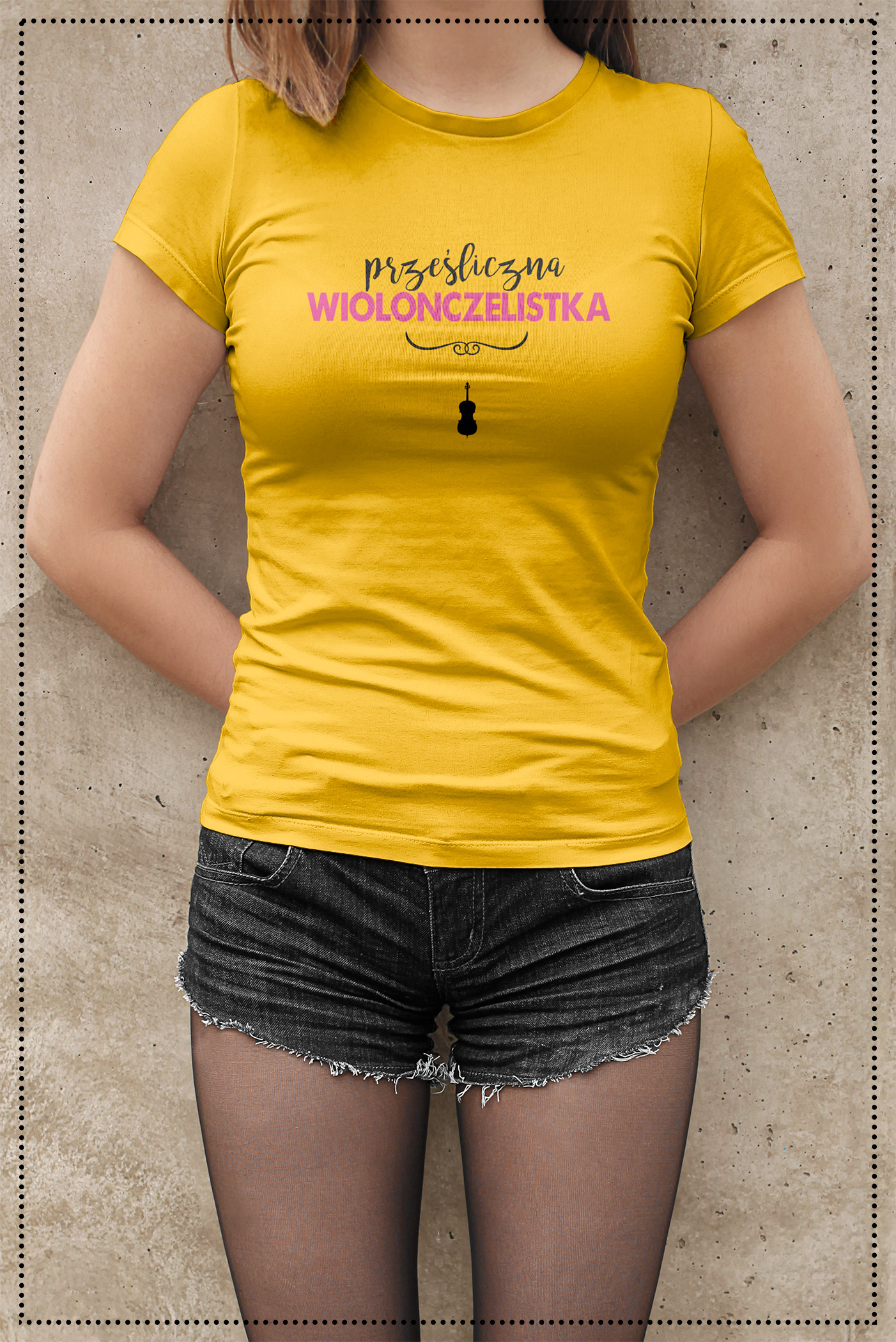 Wzór na koszulce - "Wiolonczela - Wiolonczelistka - Prześliczna wiolonczelistka - Prezent dla wiolonczelistki – Koszulka".